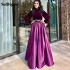 SoDigne vestido de fiesta de terciopelo púrpura Arabia, elegante, musulmán, con cuentas, manga larga, hasta el suelo, Formal, de noche, 2022