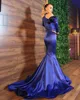 SoDigne vestido de noche árabe para mujer, vestido de fiesta con cuello alto, mangas largas, volantes, cristales de sirena, cinturón, azul, 2022