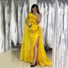 SoDigne vestido de fiesta de sirena dorada, Sexy, con abertura lateral, lentejuelas brillantes, Formal, árabe, de Dubái, un hombro, para noche