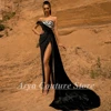 Vestido De noche bohemio negro sin tirantes, vestido asimétrico De terciopelo con lentejuelas y hombros descubiertos, con abertura alta, para fiesta De graduación