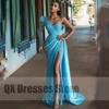 Vestido de noche largo hasta el suelo para mujer, prenda de noche con cuello en V y lentejuelas, con abertura frontal, color azul, 2022