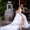 Vestido de noche Formal de encaje para mujer, prenda elegante de color blanco puro hasta el suelo, Vestido largo de playa con abertura de tul para fiesta