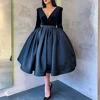 Lorie Vestidos de Noche de manga larga para mujer, vestido de noche azul marino, largo hasta el té, con cuello en V, Formal, corto, con bolsillos, 2020