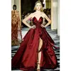 LORIE Vestidos de Noche de satén burdeos, vestidos largos de lujo con cuello en V, apliques de encaje, para fiesta de graduación, de comunión con cordones, 2020
