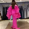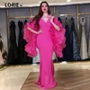 LORIE vestido de noche de satén fucsia único, sirena con manga extraíble de Organza, tirantes finos, largo, Formal, para ocasiones especiales