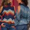 Nueva primavera y otoño de las mujeres de cuello alto de manga larga estampado camiseta sin tirantes cómodo Camiseta holgada Casual de las mujeres
