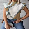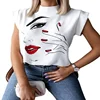 Camiseta de moda novedosa para mujer, camiseta Simple europea y americana, Top con cuello levantado, estampado de labios para mujer, camiseta sin mangas 2021