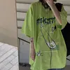 Camiseta verde fluorescente para mujer, top punk de manga corta, ropa de calle Harajuku, ropa de pareja, moda coreana preppy