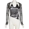 Camisola con estampado de retrato artístico para mujer, camiseta de manga larga corta, estilo callejero, dos piezas