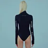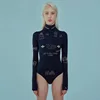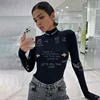 Body negro con estampado de otoño para mujer, traje de manga larga con cuello levantado, mono Sexy de una pieza