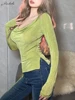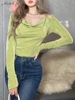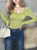 Macheda Camiseta verde aguacate para mujer, top corto sexy ajustado de cuello bajo, ropa elegante para fiesta de Navidad, novedad de Primavera de 2022