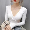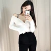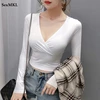 Camisetas cortas blancas de manga larga para mujer, camisetas informales sexys para mujer, ropa básica ajustada negra 2022