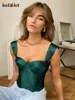 InstaHot Tops cortos de satén con hombros descubiertos para mujer, Tops sin mangas ajustados, camiseta sin mangas Sexy, ropa elegante para Club de noche para mujer 2022