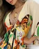 Top Irregular con estampado de mariposa y albaricoque, manga acampanada, cintura, novedad de 2022