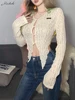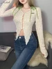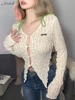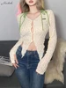 Macheda top corto ahuecado de primavera, top de encaje transparente, mangas acampanadas, elegante, recortado
