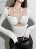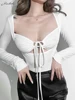 Macheda top de corte bajo con cordones para primavera, top corto ajustado a la moda, sexy, suave y elástico, tops para mujer