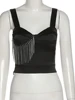 Dflifes Camiseta sin mangas con borlas para mujer, Top corto liso con Espalda descubierta, ropa Sexy para mujer, Tops sin mangas y Camis para primavera y verano