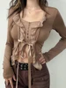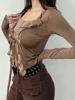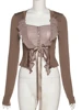 Dflifes transparente Camiseta de manga larga para mujer, Top Bandage de encaje Sexy, Top corto, ropa para mujer, primavera 2022