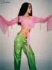 Macheda top corto de primavera con encaje transparente para mujer, top sexy para mujer, Barbie rosa, chica dulce, moda para mujer, suelto, suave y cómodo