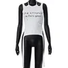 ALLNeon Tops cortos con estampado de letras Grunge para mujer, ropa de calle de e girl, sin mangas, Blanco Irregular, Harajuku, Y2K
