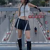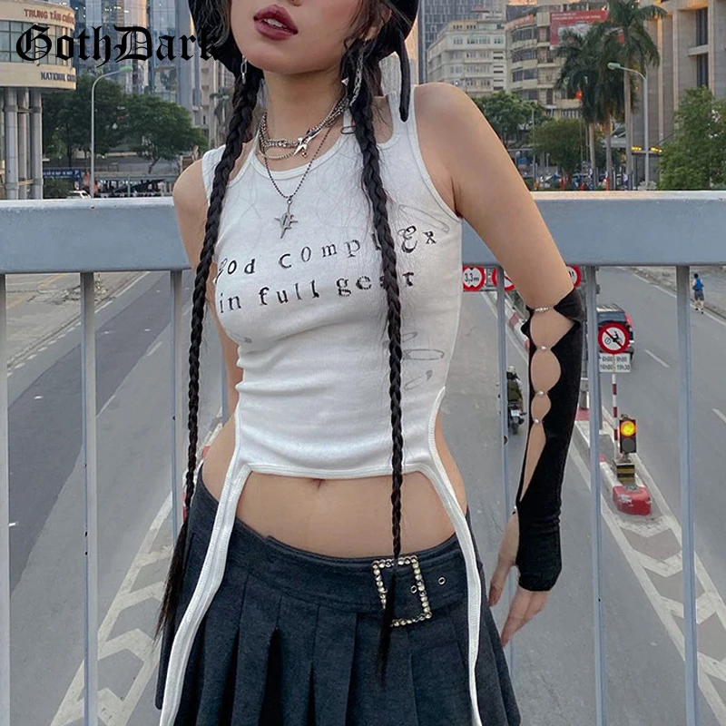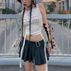 Gótico Dark Cyber Y2k camisetas sin mangas con cuello Halter para mujer, Tops con estampado gótico Punk, Tops ajustados, ropa de calle coreana blanca