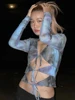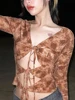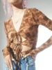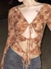 Top corto recortado, Top Sexy de vendaje para mujer, camiseta de manga larga con cuello en V, Camisetas estampadas de hada Grunge para discoteca, ropa Y2K
