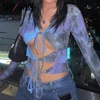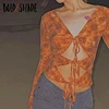 Bold Shade Camiseta VIntage Indie de los años 70, camiseta Sexy con encaje, Bodycon calado, manga larga, cuello en V, Tie Dye, ropa de calle Sexy, oferta