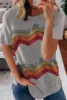 Camiseta de verano para mujer, Top informal de moda, ropa de calle elegante de algodón de manga corta con estampado, cuello redondo suelto blanco