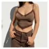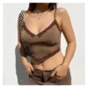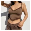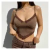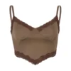 Camiseta sin mangas con tirantes para mujer, Top marrón con ribete de encaje, ropa de discoteca con cuello de pico, Top corto Sexy con espalda descubierta para mujer 2022