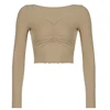 Darlingaga camisetas de manga larga informales de punto con cuello en V para mujer, Top corto fruncido básico sólido, camiseta Coreana de primavera, 2022