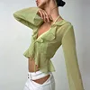 Camisetas con volantes para mujer, Top Halter transparente, camisetas con cordones, camisetas de manga larga, camisa Grunge de hadas, ropa Y2k