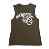 Camisetas sin mangas para mujer, ropa con estampado de letras y cuello redondo, verde militar, 2018