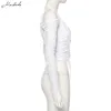 Macheda Top corto liso sin tirantes para mujer, camiseta de retales de manga larga con cuello de pico de tela de malla, ropa de calle informal