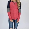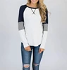 Camiseta de manga raglán para mujer, Tops suaves de primavera y otoño, camiseta informal a rayas con cuello redondo, camiseta de talla grande, camiseta de retazos 2020
