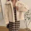 Abrigo corto de visón de imitación para mujer, chaqueta Coreana de manga larga con cuello vuelto, informal, sólido, cálido, Otoño e Invierno