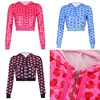 WEEKEEK Chaqueta Rosa de Terciopelo con Corazones Kawaii para Chica, Sudadera Corta de Manga Larga con Capucha, Cremallera, Estilo Callejero y Harajuku, Novedad de Primavera y Otoño