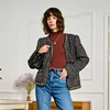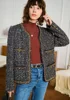 Chaqueta Vintage de otoño e invierno para mujer, chaqueta de Tweed a cuadros con lentejuelas, elegante