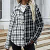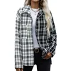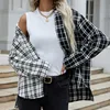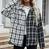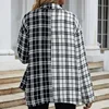 Otoño nuevo a cuadros chaqueta blanco y negro largo de costura de manga larga solapa camisa a cuadros chaqueta de moda Casual ropa de las mujeres