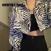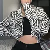 Camisa con estampado de leopardo para mujer, Rebeca de manga larga con cuello vuelto, Top corto de cebra, blusa Chic de Hip Hop para chicas adolescentes, moda coreana