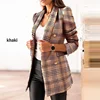 Chaqueta informal de doble botonadura para invierno, traje de dibujo de cuadros, chaqueta ajustada, traje de oficina, chaqueta elegante con cuello