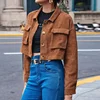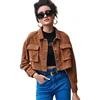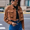 Chaqueta vaquera de manga larga para mujer, bolso de un solo pecho, informal, con solapa de pana, para invierno, 2021