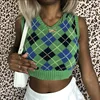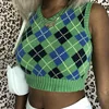 Camiseta sin mangas con cuello en V para mujer, Chaleco Ajustado a cuadros en contraste, moda de otoño, 2021