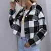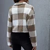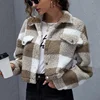 Chaqueta holgada de manga larga para mujer, chaqueta gruesa de felpa a cuadros con solapa, ropa de calle ajustada, otoño e invierno, 2021