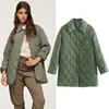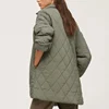 Chaqueta de algodón de manga larga para mujer, chaqueta gruesa con solapa y entramado de diamantes de una hilera, Otoño, 2021