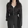 Sudadera con capucha de manga larga para mujer, ropa de calle básica con cremallera, abrigos con cremallera, estilo Grunge, para otoño e invierno, 2021