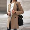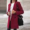 WYWMY abrigo de lana con doble botonadura para mujer, chaqueta de manga larga de Color sólido, traje de cuello, chaquetas de lana para Otoño e Invierno