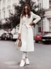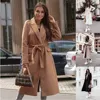 Chaqueta de lana con cinturón para mujer, abrigo de lana de manga larga con cuello en V, mezcla de lana, traje Popular, novedad de invierno