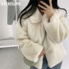 IAMSURE abrigo peludo liso para mujer, chaquetas gruesas informales de manga larga, ropa de calle elegante a la moda, estilo coreano dulce, invierno, 2021