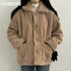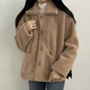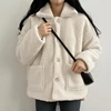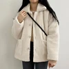 IAMSURE abrigo peludo de estilo coreano para mujer, chaqueta informal de manga larga con bolsillos y cuello vuelto, ropa de calle bonita a la moda, 2021