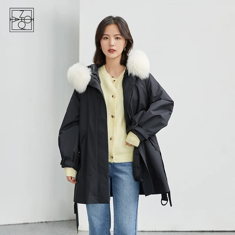 ZIQIAO abrigo de plumón negro con cuello de piel de zorro para mujer, Parka ligera de piel desmontable, chaqueta con capucha Beige, chaquetas gruesas